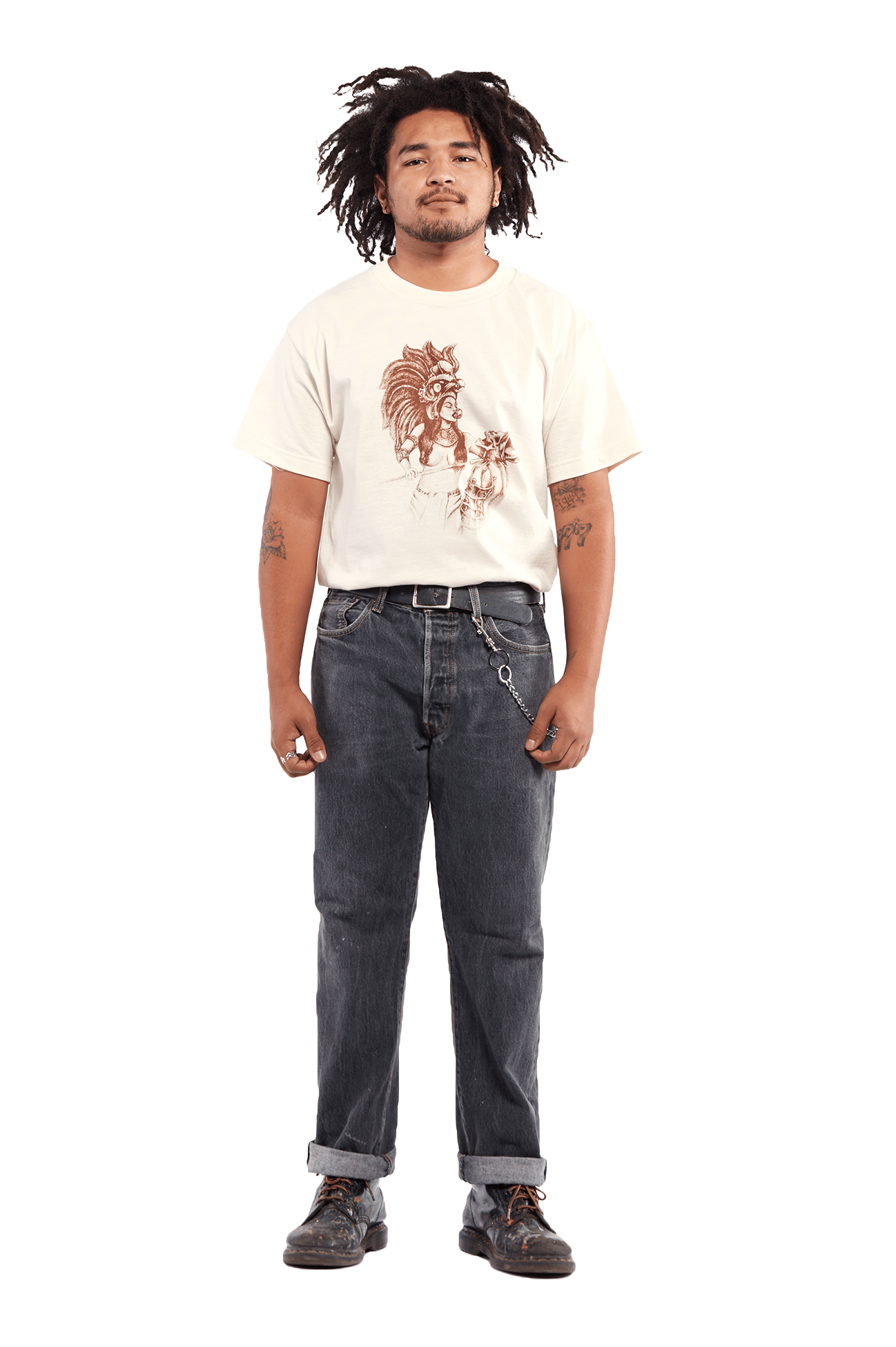 Printed on 6.1 oz cream cotton T-shirts